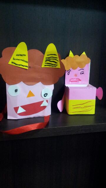 節分に本物の鬼さんが来た時に お豆を入れて戦うそうです(^-^)